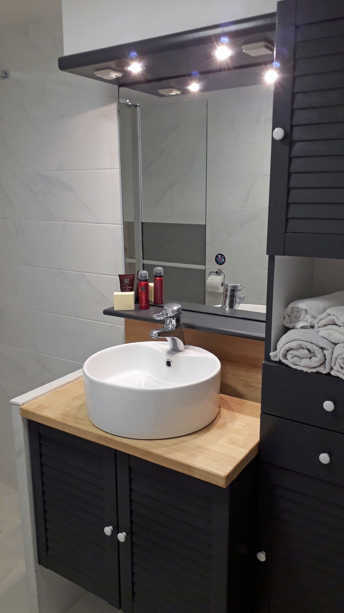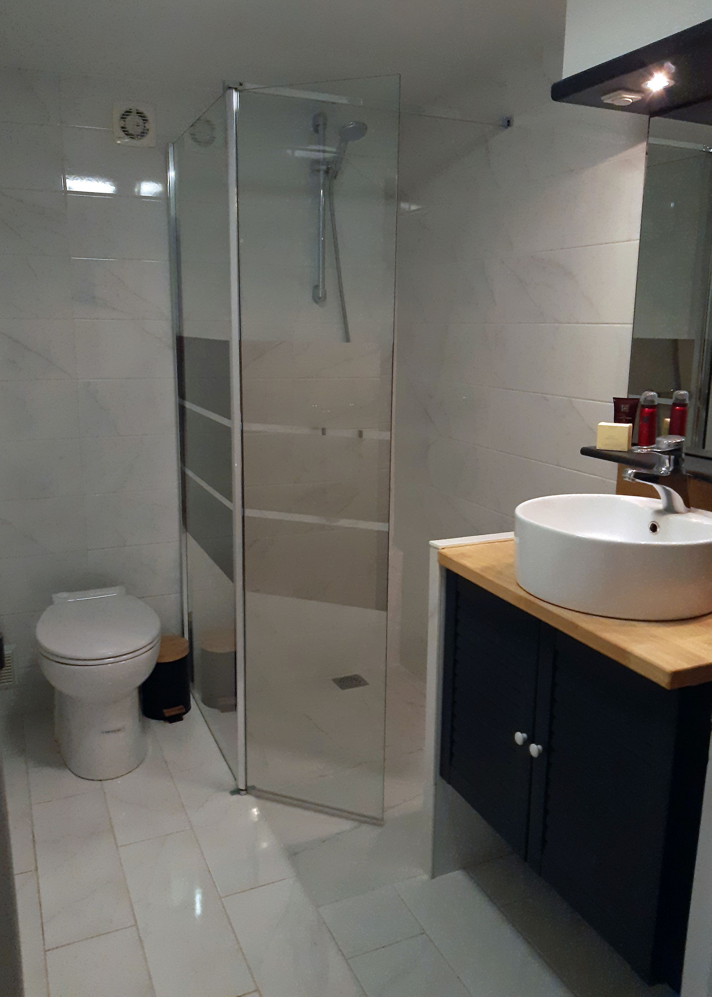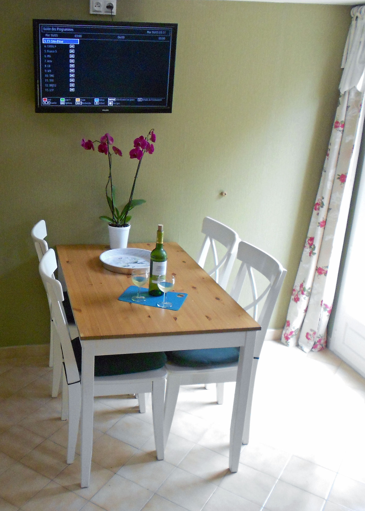The apartment has a fitted kitchen with fridge, hob, microwave, coffee maker and kettle.